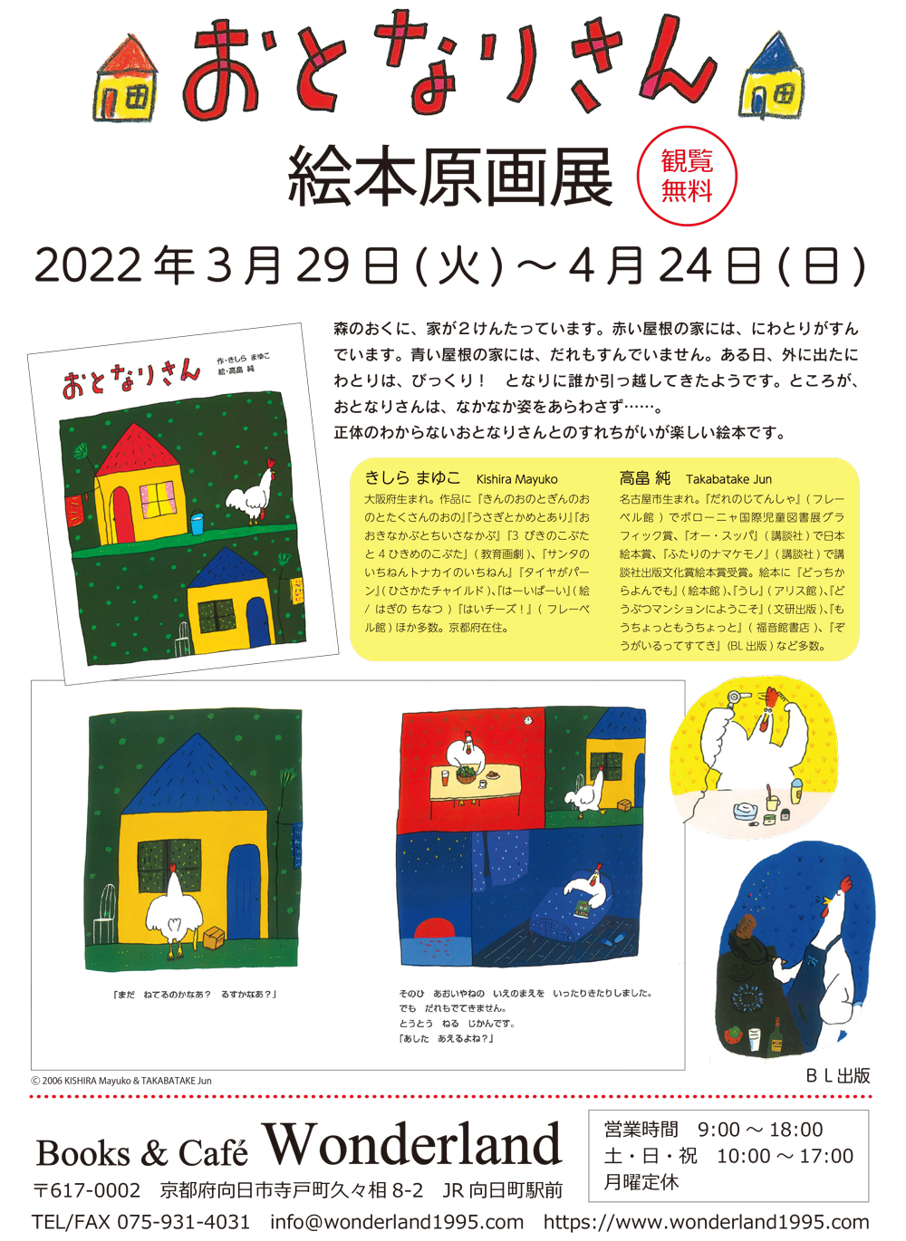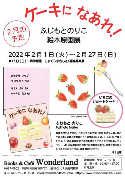 Books & Cafe Wonderlandのギャラリーは、絵本原画や写真、アート作品が持つ“ふしぎ”や“ときめき”に出会える小さな展示室です。